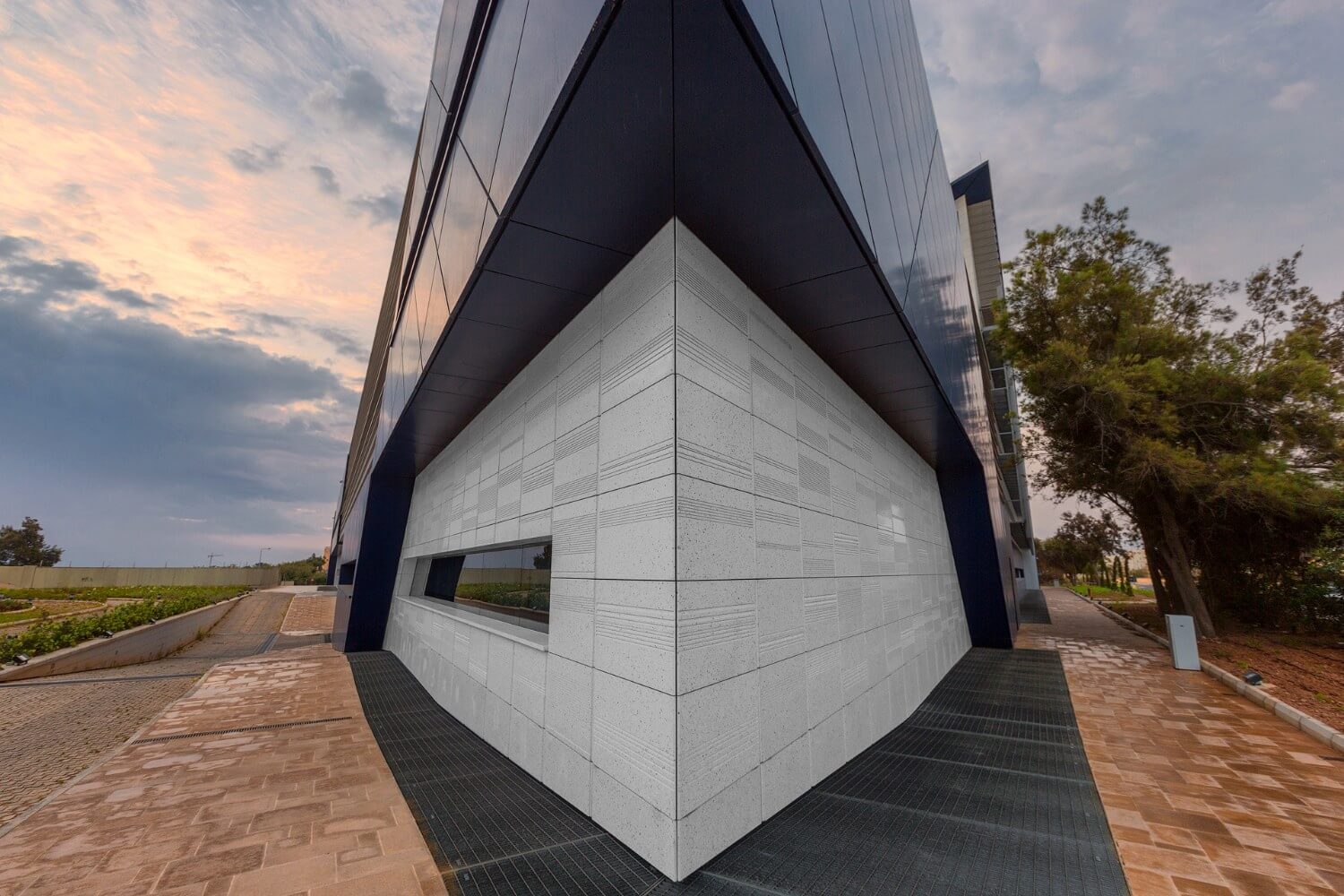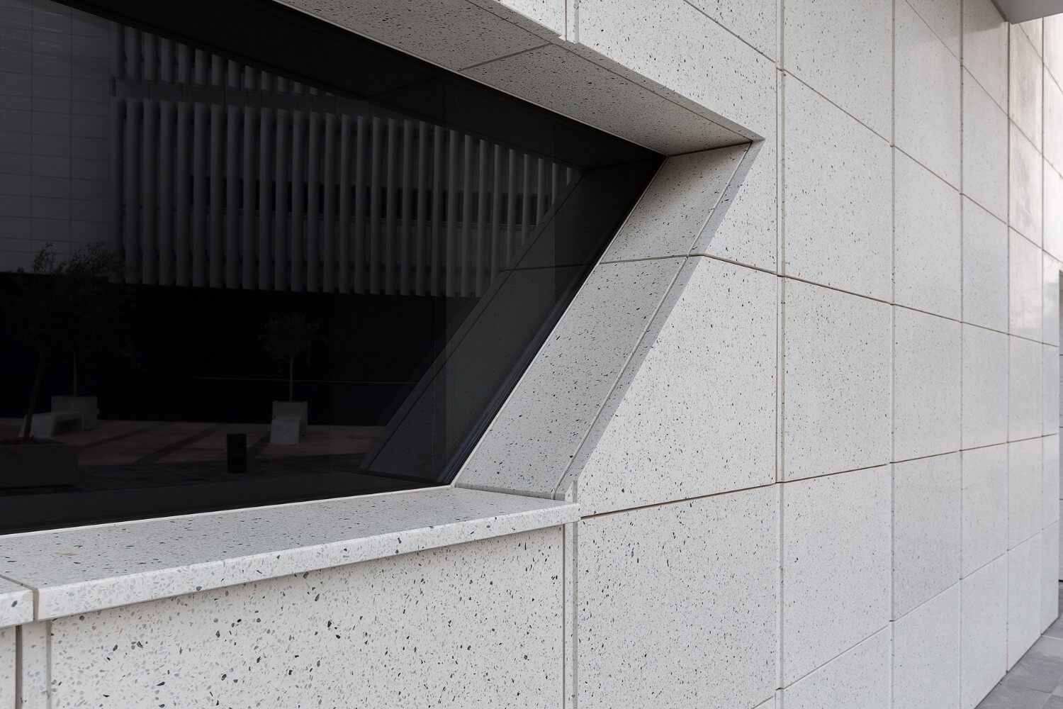This project covered two main elements; a ventilated façade and external hard landscaping using the Silver Glacier terrazzo mix from the Classic Collection. The largest façade panels measured 1000mm x 600mm, whereas flooring pavers were cut to a maximum of 900mm x 600mm.