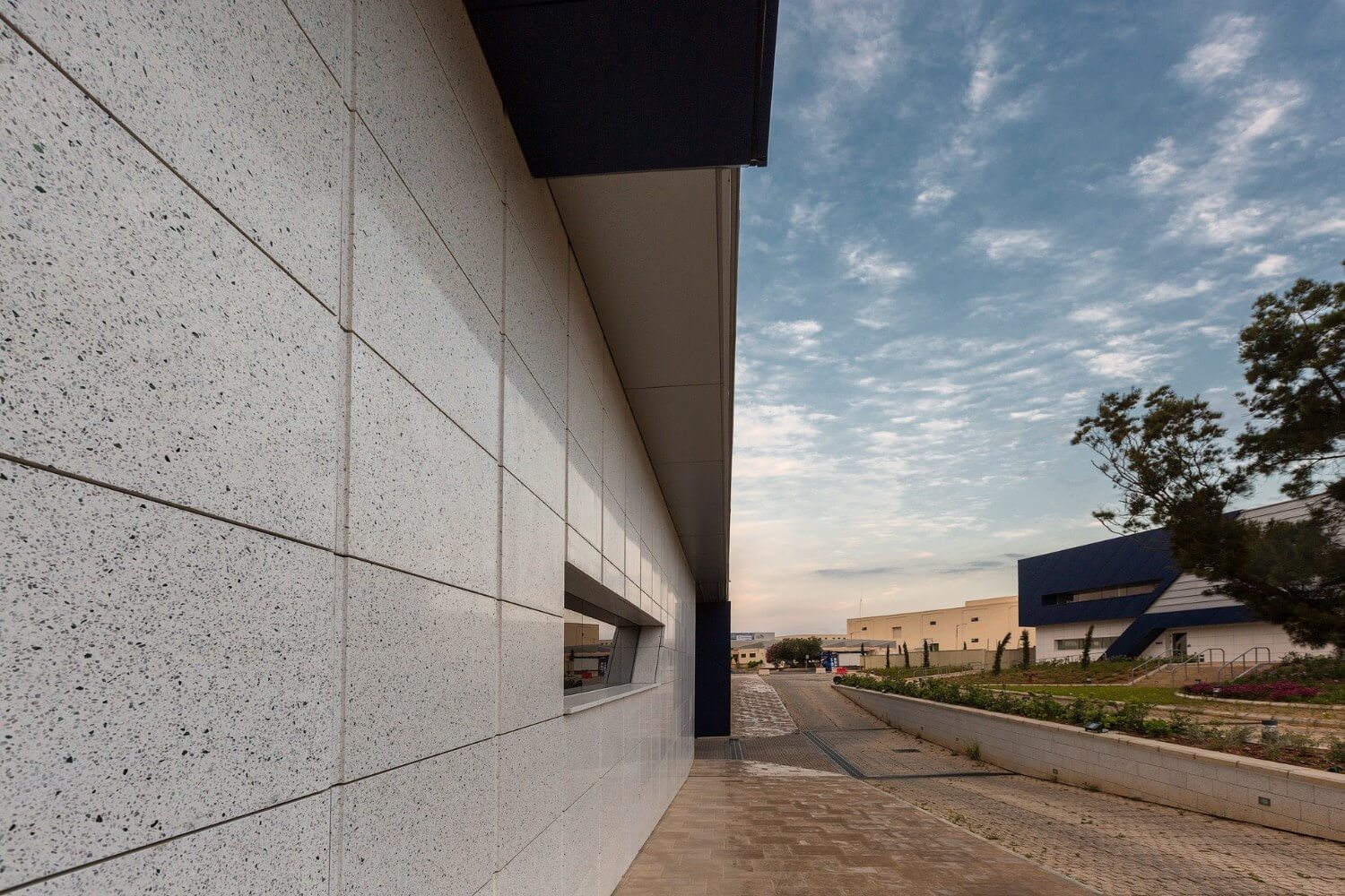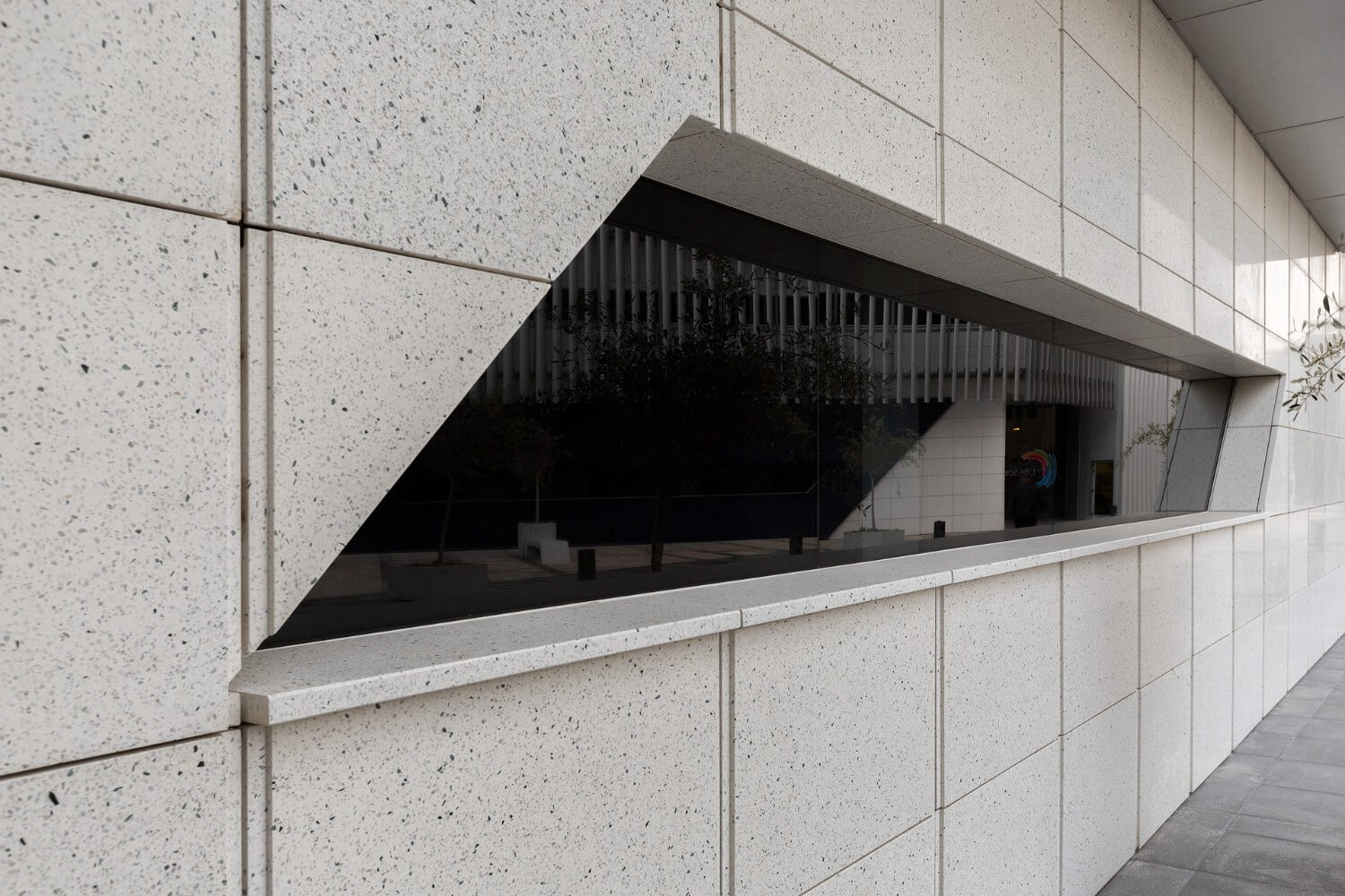 The scope of the project was to create a building with environmental credentials. A ventilated façade was implemented for its environmental benefits. The combination of structural walls, insulation and a terrazzo ventilated façade created a system which protects the building from thermal gains and losses hence improving the overall energy performance of the structure. The resultant gap between the structure and façade creates a natural stack effect that keeps the building cool in summer and warm in winter.