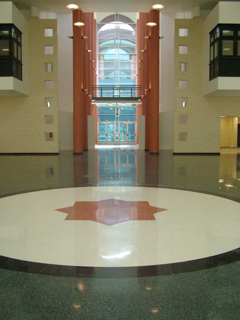 Together with Project Architects, Halmann International have created a technical design mix that caters for all project attributes. The terrazzo mix designs were chosen from the Minima and Classical range and implemented on site for flooring at the main entrance, circulation spaces, staircase cores and corridors running along the entire building.