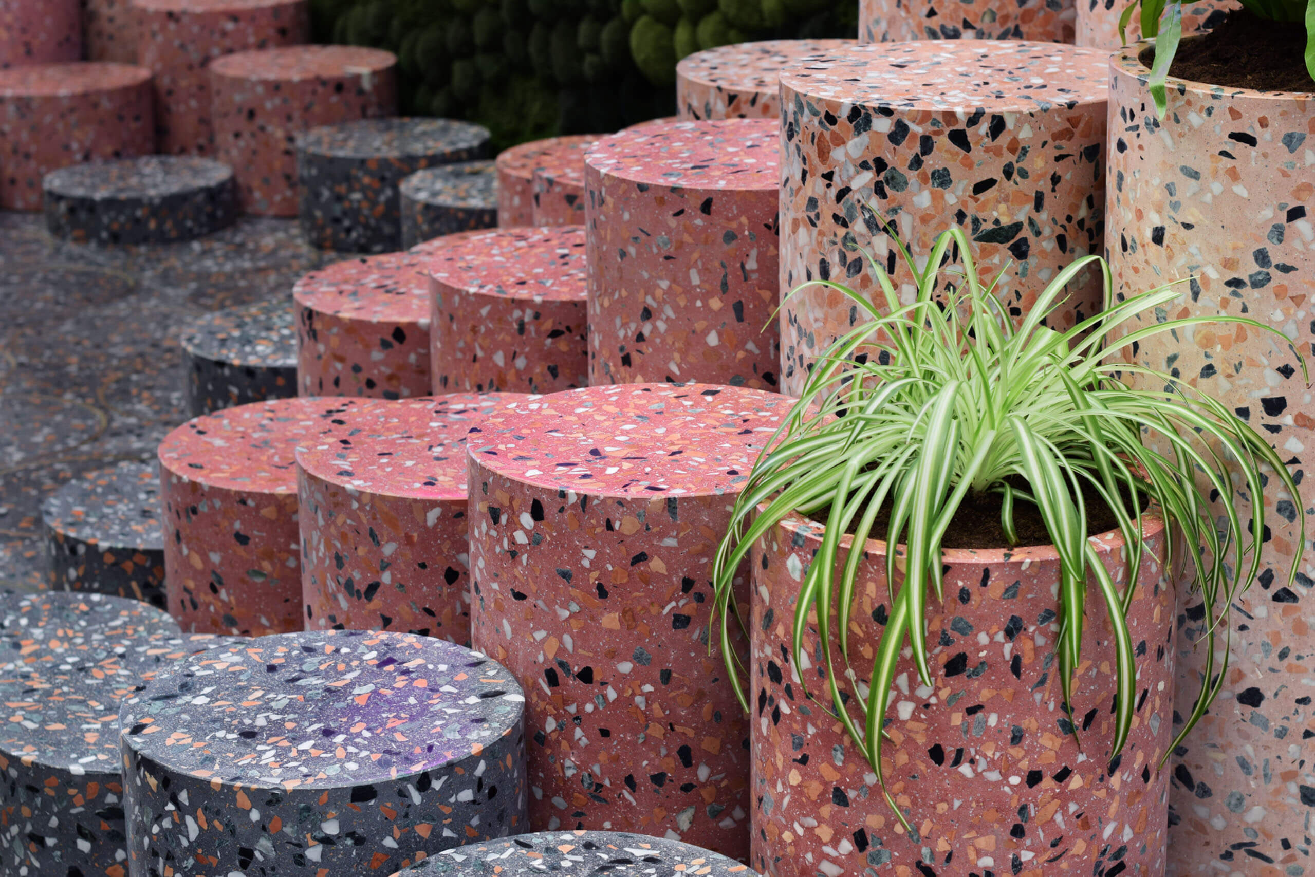 The nature infused ‘Terrazzo Garden’ was designed in a way to showcase the versatility, tactile quality and aesthetic appeal of terrazzo whilst offering an interactive space that encourages human exploration and interest.